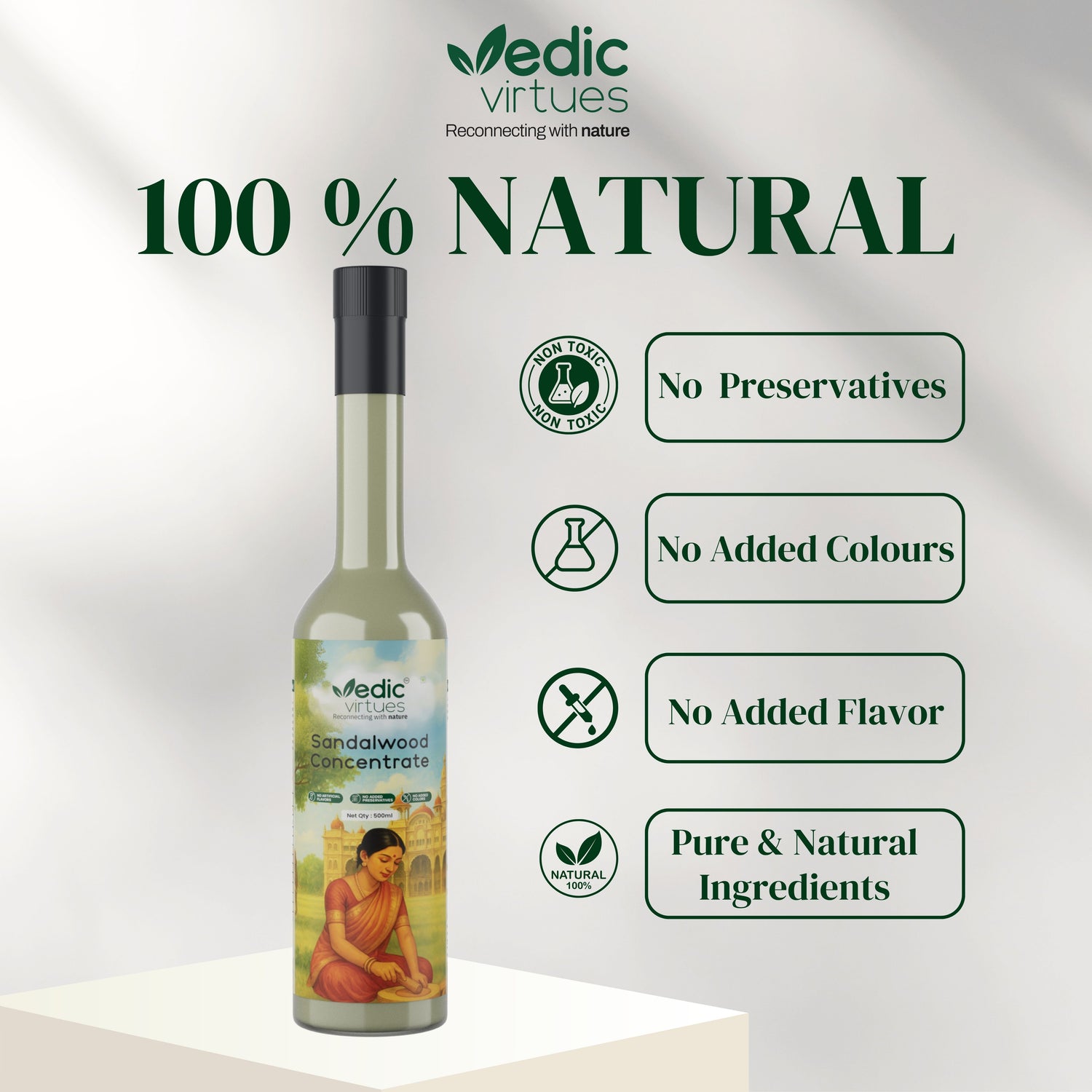 Experience the age-old Ayurvedic magic of sandalwood in a delicious, drinkable form. Our Sandalwood Concentrate is made using pure and natural ingredients, without compromising on taste or wellness.