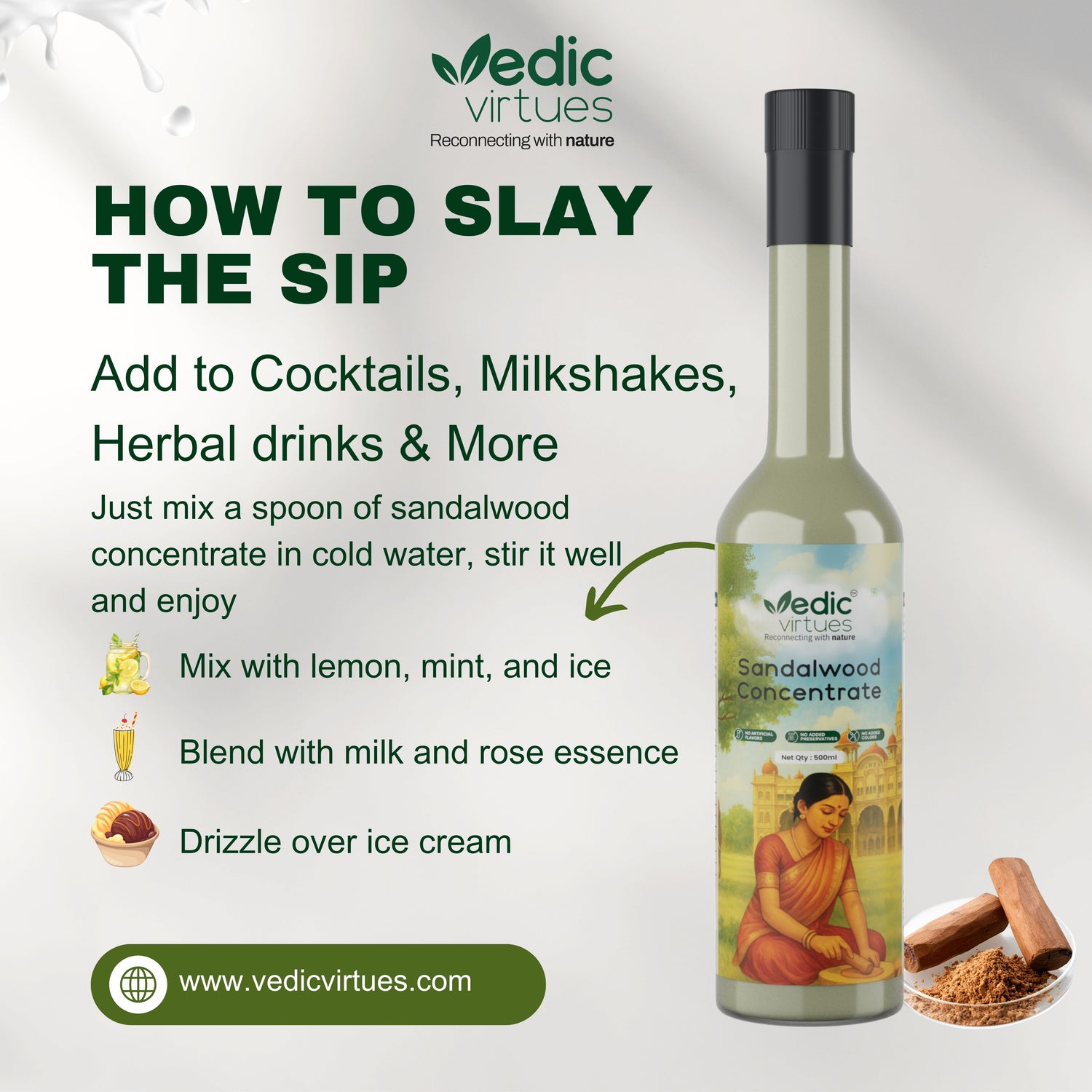 Just mix a spoon of Sandalwood Concentrate in cold water, stir well, and sip serenity.